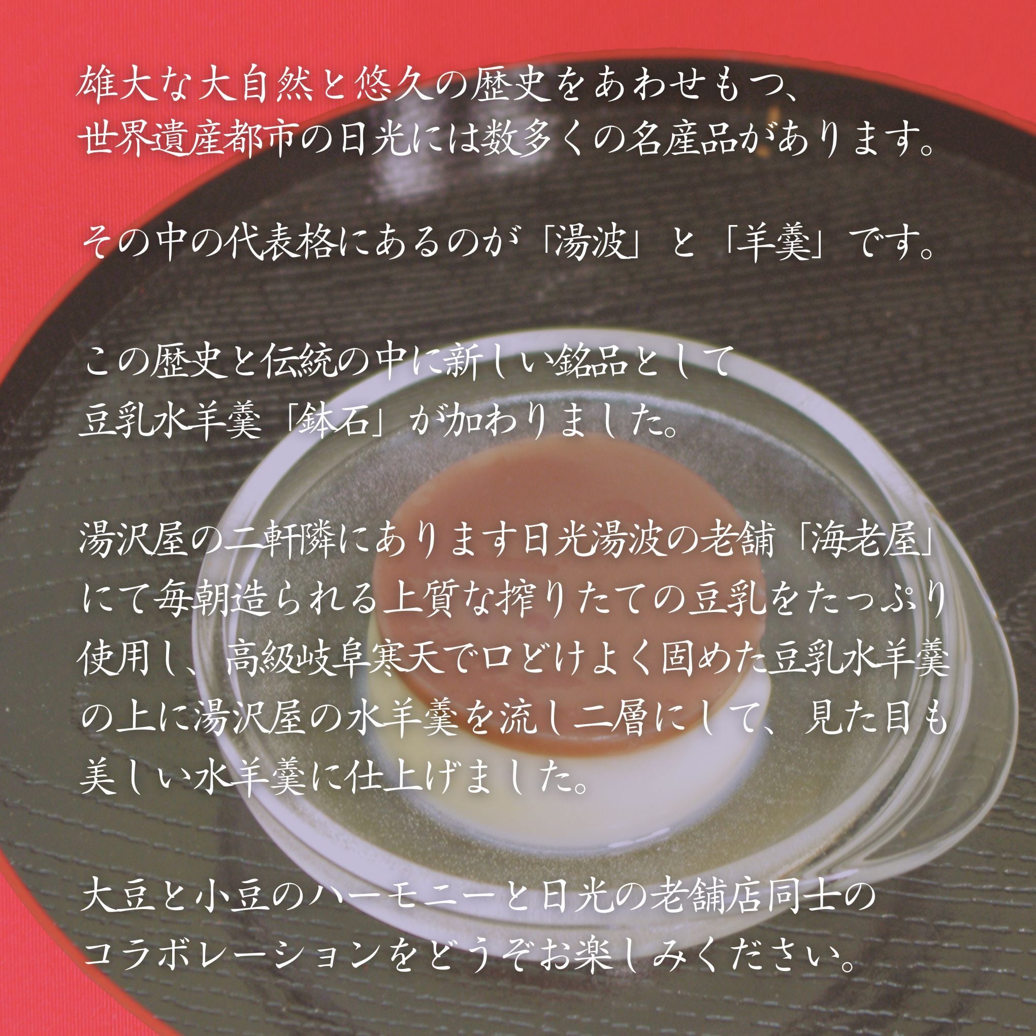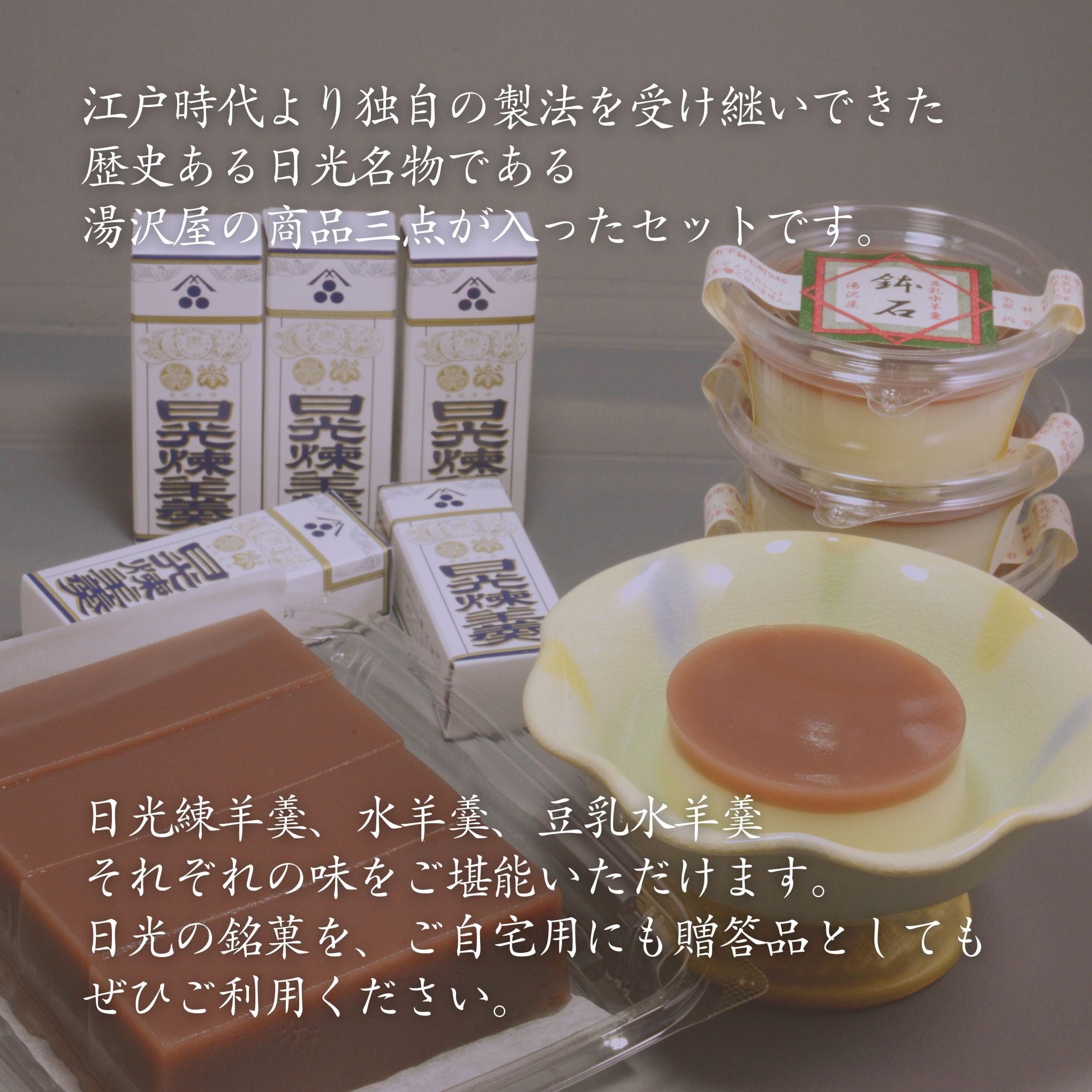 日光煉羊羹ミニ、水羊羹、豆乳水羊羹『鉢石』が入って、それぞれの味をご堪能頂けます。日光の銘菓をご自宅用にも贈答ギフト用としても、ご利用いただけます。